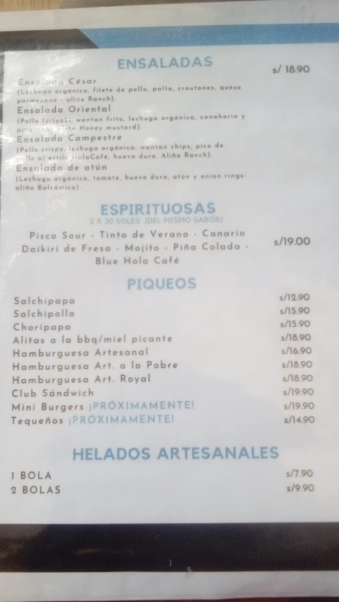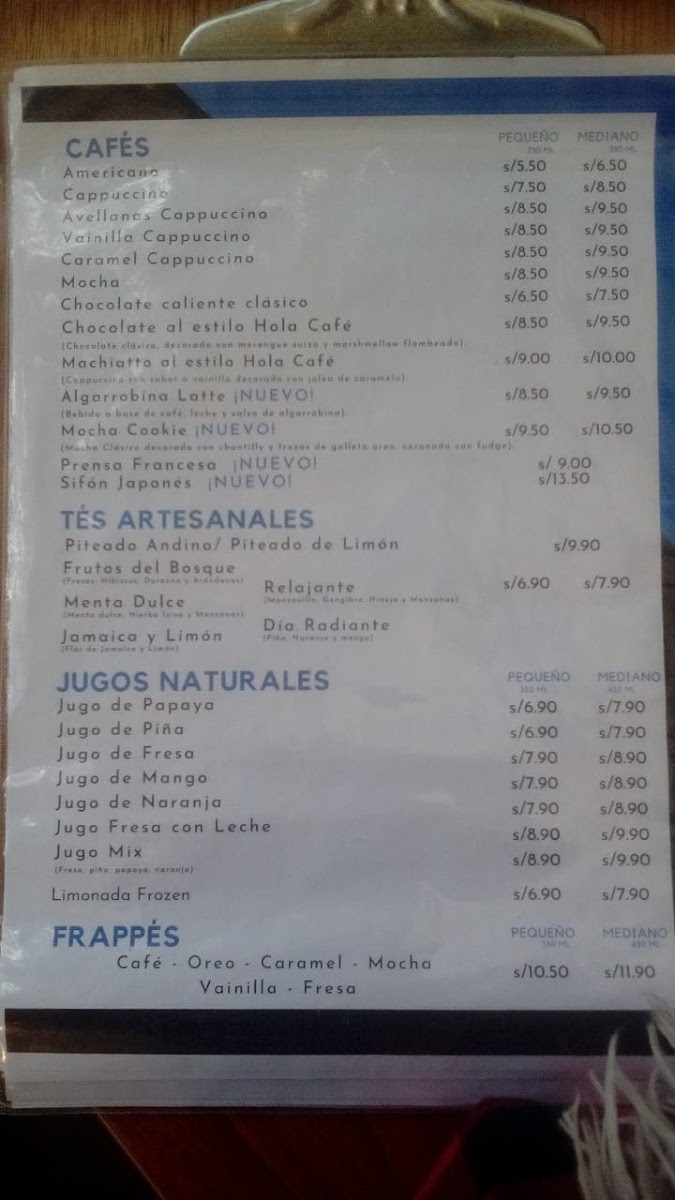 For those with a sweet tooth, don’t miss their Frappé Irresistible, made with premium quality ingredients and priced at PEN 16.90, or the rich and creamy Milkshake for a refreshing treat at PEN 21.90. The cozy ambiance of Hola Cafe, paired with the melodious tunes that fill the air, creates a warm backdrop for leisurely afternoons or lovely evenings.